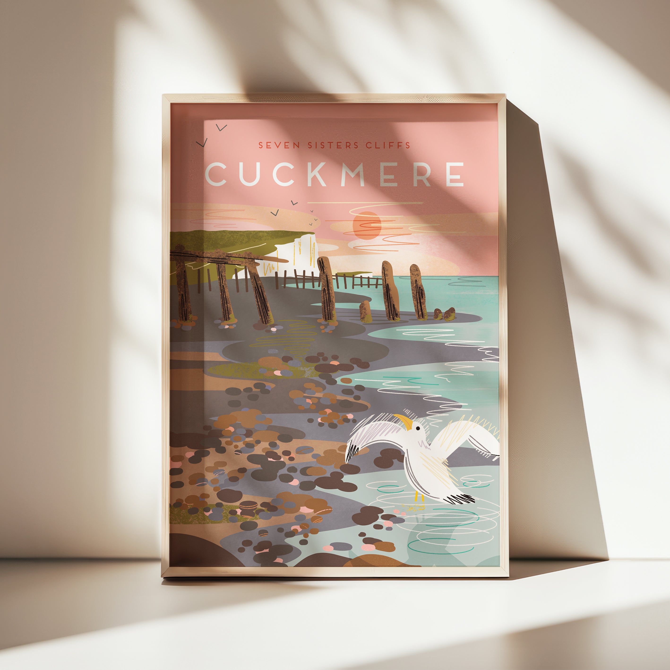 The Cuckmere Seven Sisters print features a contemporary illustration inspired by one of Sussex’s most celebrated cultural landmarks. Part of the evolving Landmark collection, the artwork reflects a more detailed and refined illustration style while retaining the bold composition and strong sense of place that defines the series.