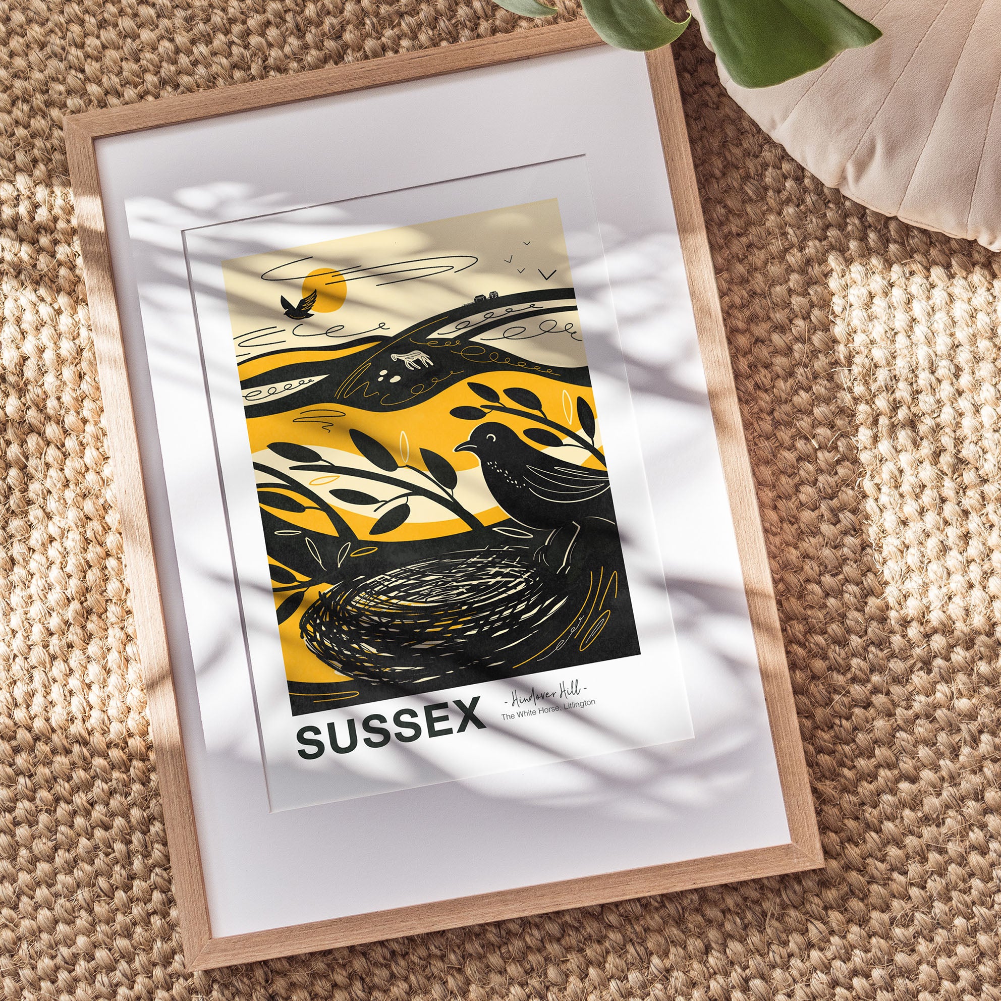 Each print in the range is titled SUSSEX and includes a small accompanying text reflecting the character of the landscape depicted.