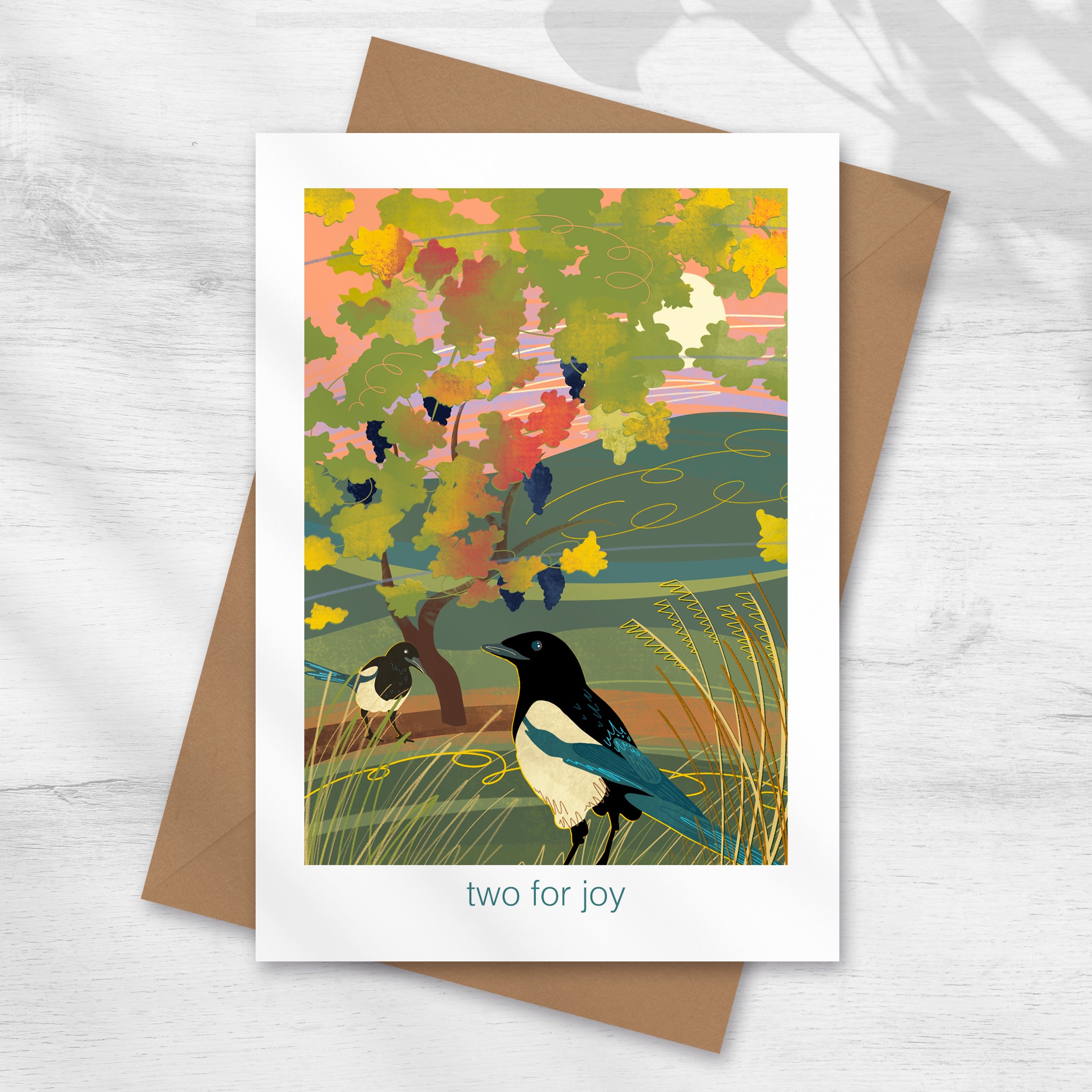 The Two for Joy greeting card features an illustration inspired by time spent outdoors and the small moments that make being outside feel special. Part of the Let’s Go Outside collection, this design celebrates nature, seasonal change and the joy of slowing down.